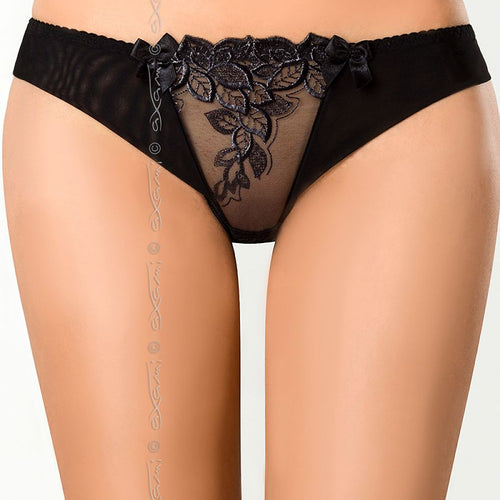 Tempting, sensually cut thong V-7848 Peanut Tarte is a proposal for an intoxicating evening and a guarantee of passionate discoveries. Elegant black and lace on beige background will highlight the beauty of your body, proving that sometimes less is more? Size Hips width L 98-103 cm M 93-98 cm S 88-93 cm XL 103-108 cm