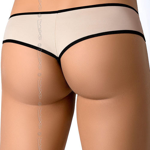 Libeccio thong is a combination of silky smooth beige microfiber, black trimmings and tempting back. Incredibly sexy and seductive. Cotton 3 % Spandex 19 % polyamide 78 % Size Hips width L 95-100 cm M 89-94 cm S 83-88 cm XL 101-106 cm