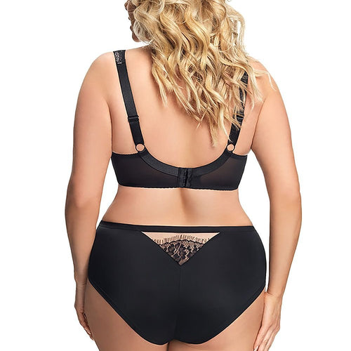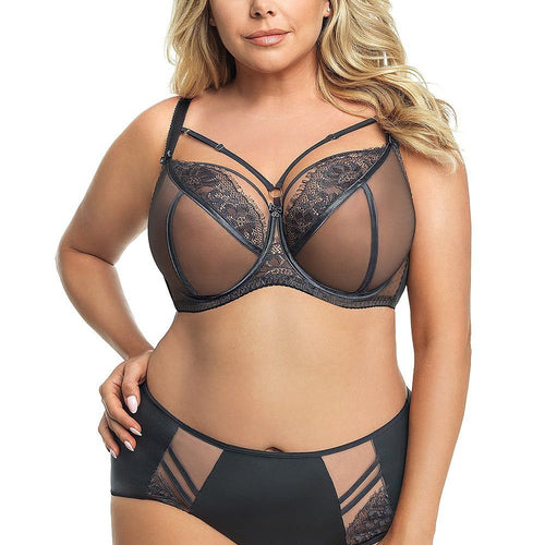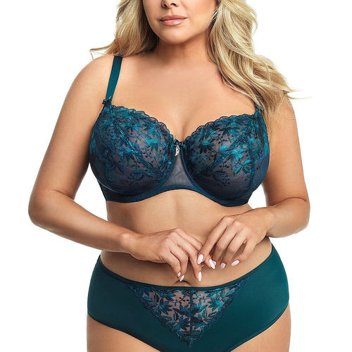 Dark shades of green are currently extremely fashionable, hence we are not surprised that it also appeared in Gorsenia. Rimini is a bra in an intriguing, deep green, made of delicate, double mesh, decorated with a floral pattern practically all over the cups. Reinforced construction, with underwire, lifts and shapes breasts perfectly, presenting them beautifully in the neckline. Spandex 7...