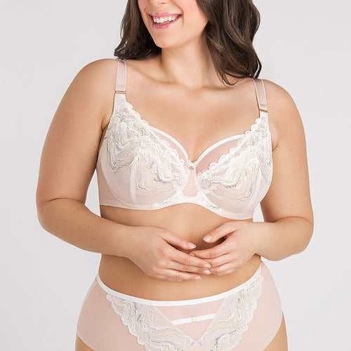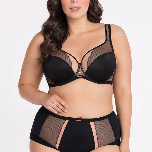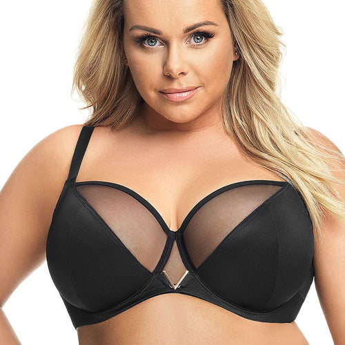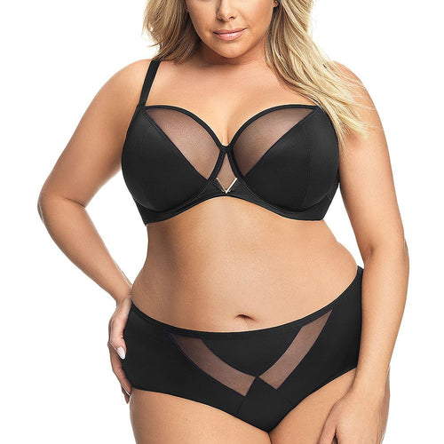 Elegant and functional soft bra designed for women with larger breasts. Deep, comfortable cups without padding perfectly fit the silhouette, shaping the bust and collecting it from the sides to the center of the neckline. The bra is equipped with lower and side underwires, which provide optimal support and stability. Lace and mesh decorations give it a subtle elegance, and...