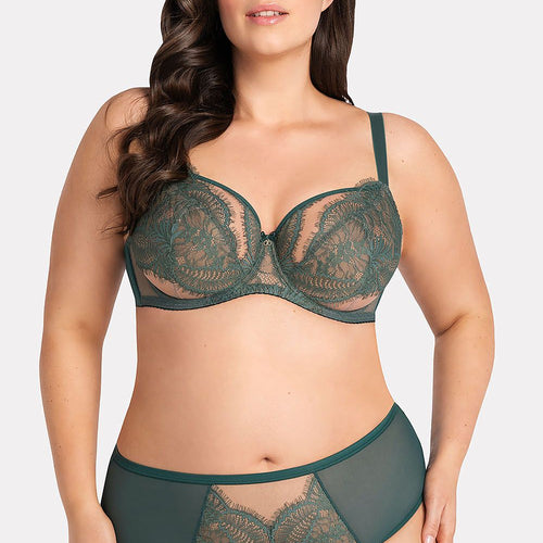 Elegant and comfortable soft bra created for women with larger breasts. Thanks to deep, comfortable non-padded cups, it perfectly fits the silhouette, shaping the bust and gathering it from the sides to the center of the neckline. The bra is equipped with bottom and side wires that provide additional support and stability. Lace decorations give it subtle elegance, and the...