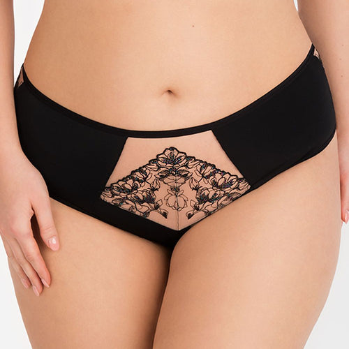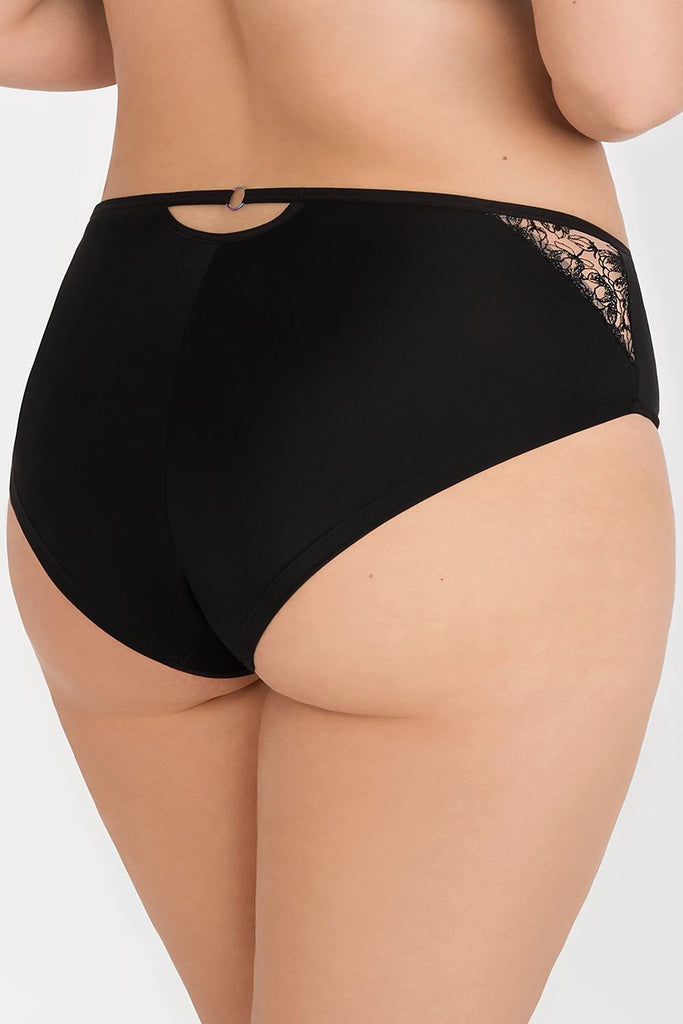 A classic model of mid-rise panties, from the company Gorsenia. The model covers almost the entire buttocks. Made of opaque microfiber with an insert of embroidery on tulle. The back is made of microfiber. The waistband is finished with a wider elastic band, with a decorative ring. Spandex 7 % polyamide 90 % Polyester 3 % Size Hips width L...