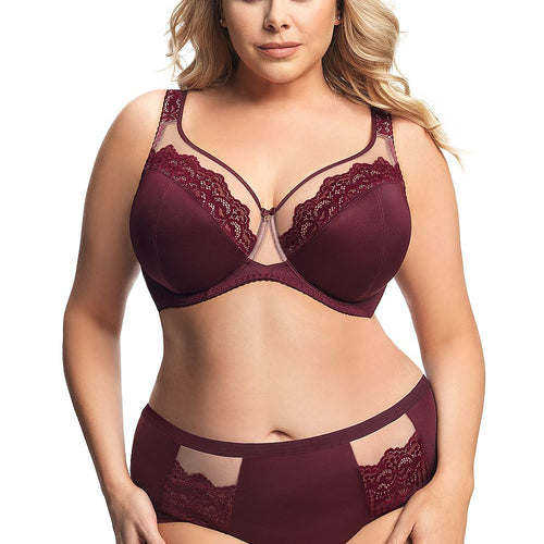 Sensational, very comfortable bra Luisse K441, in a new, elegant burgundy color. Soft type, with underwire. Perfect for medium and larger breasts. Adorns the body very nicely, especially thanks to the delicate lace in duet with light tulle. A big advantage of this bra are extended straps which ensure comfort of wearing. Their width depends on the size. The whole...