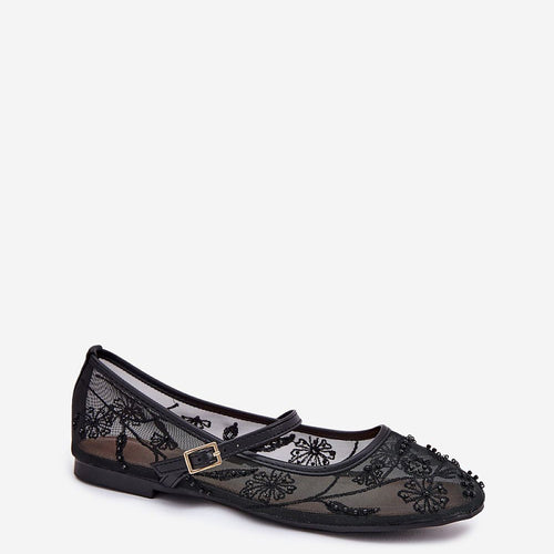 Mesh ballerinas with embellishments and embroidery are a stylish option for everyday wear. The strap across the midfoot provides additional support and comfort, while the rounded toes add subtlety. The soft, eco leather insole ensures comfort throughout the day. Perfect for both pants and dresses. fabric Plastic plus eco leather Footbed artificial leather Heel height 1 cm Size Insole lenght...