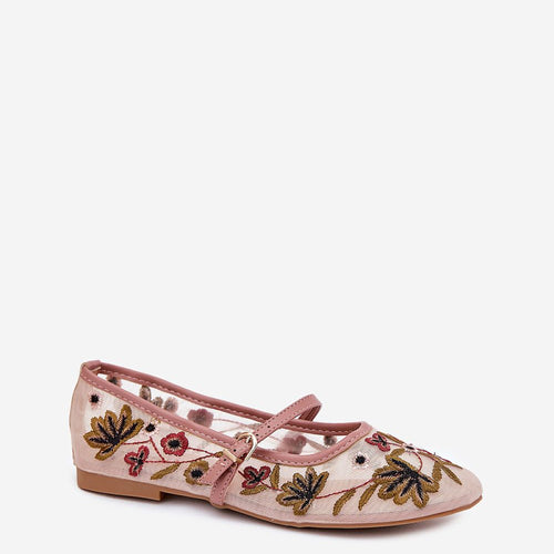 Women's ballerinas with floral embroidery are a charming and elegant proposition for everyday wear. Rounded toes add subtlety to them, and an adjustable strap with a buckle on the instep ensures additional stability and comfort. Thanks to their unique look, these ballerinas are perfect for many styling options. fabric Plastic plus eco leather Footbed artificial leather Heel height 1 cm...