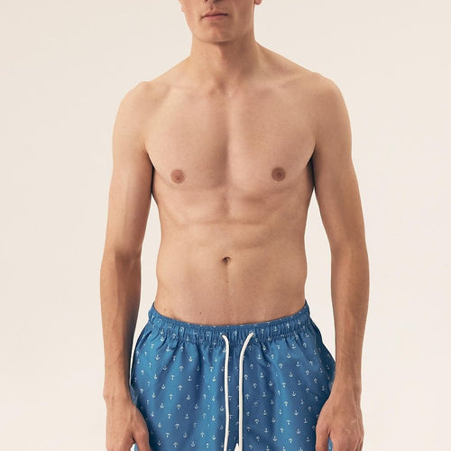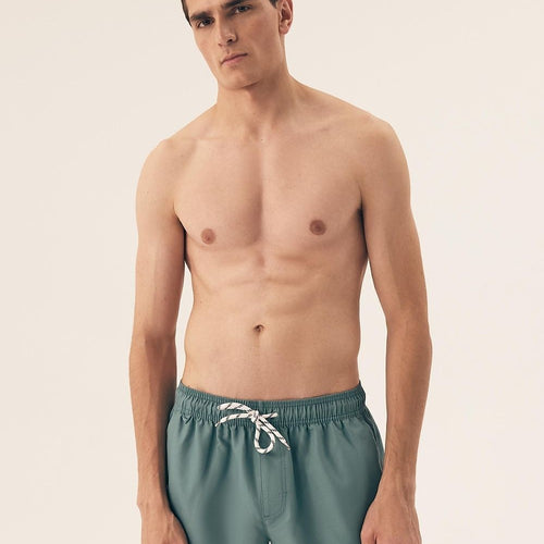 Zavier is a modern men's swimwear with a comfortable shorts cut. With loose mid-thigh legs, an elastic band tucked into a fabric tunnel and straps at the waist, they provide comfort and confidence in any situation. They were sewn from thin, pleasant to the touch, durable fabric that dries quickly. With their energetic turquoise blue hue, they will be an...