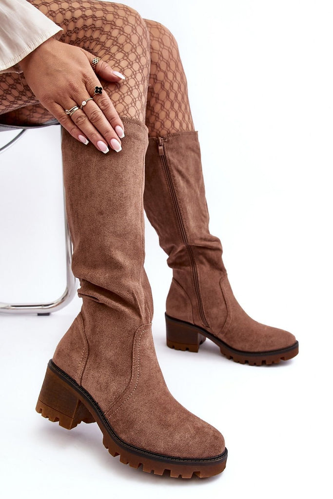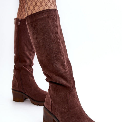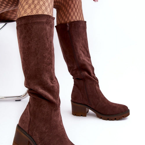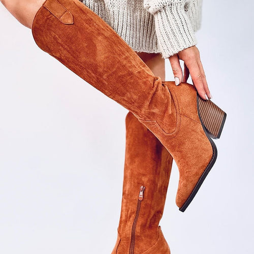 Women's suede boots on a wide heel with a height of 8,5 cm. They have the most fashionable cut of the cowboy type with tapered noses.... Practical zipper closure on the side of the upper is a convenient solution. Order them and you won't regret it! They are made of eco-suede, and the interior is lined with soft fur. fabric...