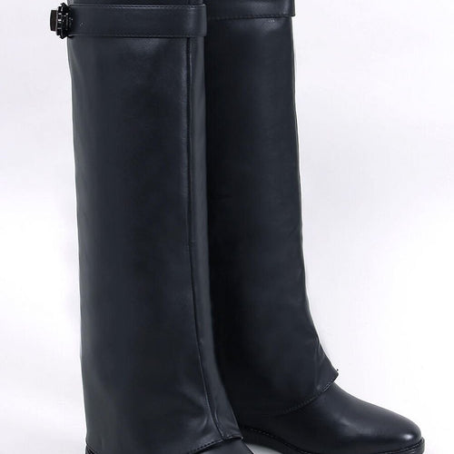 Women's veneer boots ? jackboots on a hidden anchor with a height of 5 cm. Unique cut with double upper and buckle is a fashion hit! While the black color will go with everything - don't wait and order them today : ) They are made of organic leather, and the interior is lined with soft fur. fabric artificial leather...