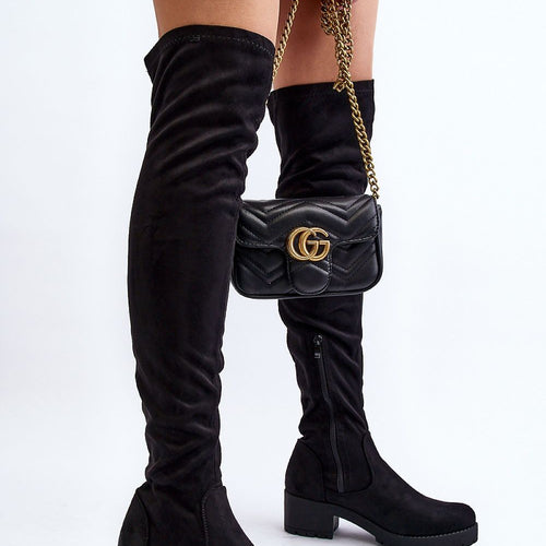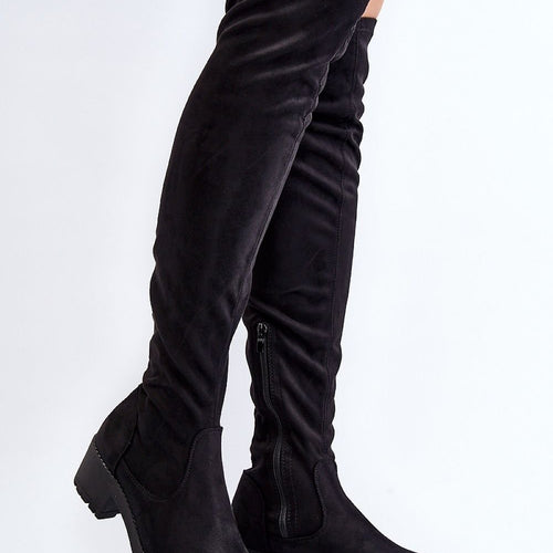Women's boots with an upper behind the knee. Made of eco-suede. Set on a low heel. Slip-on model with additional zipper closure. Rounded toes. Great for short skirts or dresses. These boots must be yours! fabric imitation leather suede Footbed shoe cover Upper height 56 cm Heel height 5 cm Platform height 2 cm Size Insole lenght 36 23.5 cm...