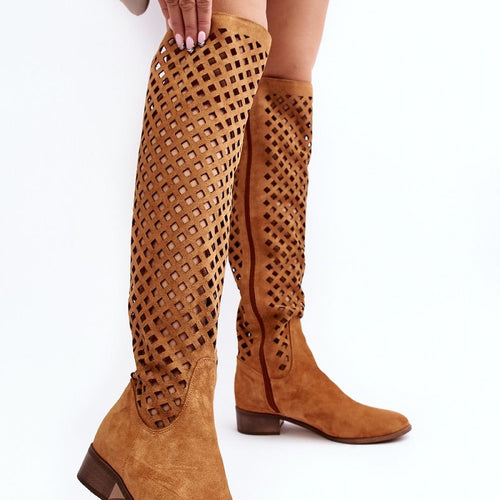 Beautiful women's boots from a Polish manufacturer. Each model is made of high-quality natural leather. Openwork boots are made of soft, natural suede. Model with rounded nose. The upper is fully zippered. Decorative cutout at the top. Flat heel and soft leather insole are a guarantee of stability and comfort during use. A perfect model for the spring-summer season! fabric...