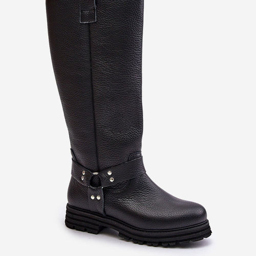 Women's boots from the Jezzi brand. Upper up to the middle of the calf. Set on a flat heel, which ensures comfortable wearing all day long. They have an insulated interior with a shoe blanket, which guarantees warmth and comfort. Almond toe noses. This model is distinguished by a decorative buckle with straps. The classic cut makes them a perfect...