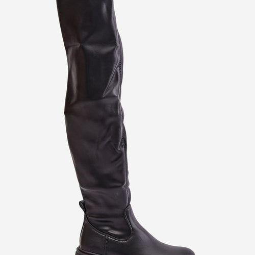 Over-the-knee boots set on a massive platform are a stylish choice for colder days. The slip-on model, with an additional zipper at the bottom of the upper, making it easy to put on and adjust. Insulated only at the level of the foot, they provide warmth and wearing comfort. Fashionable cut that will add character to any styling. fabric artificial...