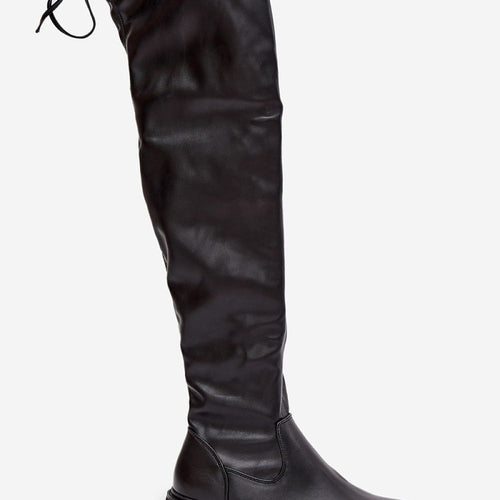 Women's knee-high boots made of synthetic leather are a fashionable and practical choice for cooler days. The high shaft reaching beyond the knee beautifully emphasizes the legs, and the lacing at the top allows for a better fit of the footwear. The slip-on model, with an additional zipper at the bottom, makes it easier to put on and take off....