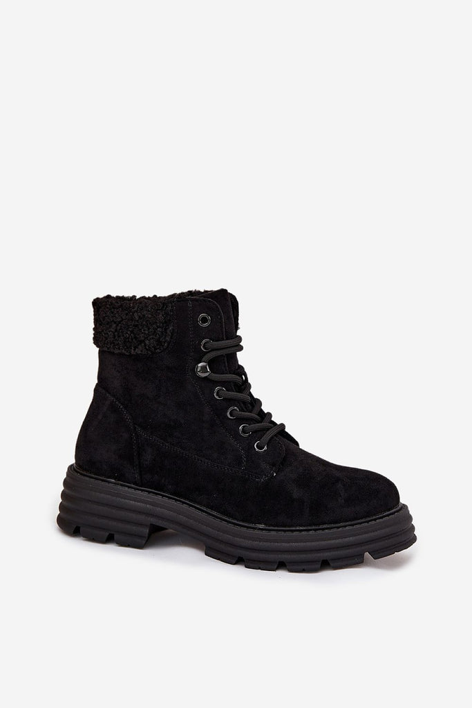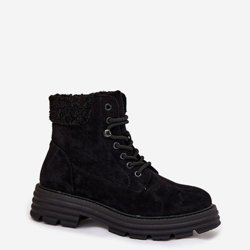 Women's ankle boots made of eco leather. The model has a zipper and lacing, which ensures comfort and the possibility of a perfect fit to the foot. The interior lined with soft fur guarantees thermal comfort, and the rounded toes emphasize the classic character of the footwear. The rubber sole provides good grip and stability on various surfaces. An additional...