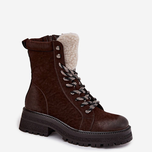 Women's ankle boots made of eco leather. The model has a zipper and lacing, which ensures comfort of use and the possibility of perfect fitting to the foot. The interior is lined with soft fur, guaranteeing thermal comfort, and the rounded toes emphasize the classic character of the footwear. The rubber sole provides good grip and stability on various surfaces....