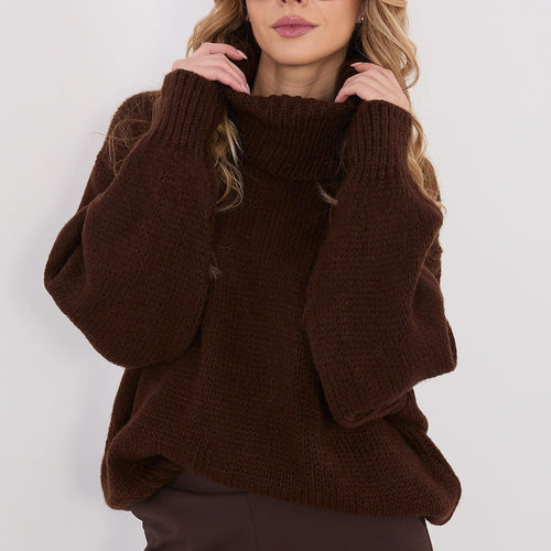 A loose women's sweater with a turtleneck is the perfect choice for everyday, casual styling. Made of a blend of acrylic, mohair, and nylon, it is soft, light, and pleasant to the touch, providing high comfort for wearing all day long. The model of standard length and long sleeves stands out with a varied texture of the material, which gives...