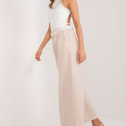 Zip and button fastening fabric trousers are the perfect choice for women who value elegance and comfort. Thanks to their classic cut and finish, they are a versatile wardrobe staple suitable for various occasions. The elegant cut makes these trousers perfect for both everyday styling and more formal occasions. The wide legs add sophistication and class while providing comfort. Perfect...