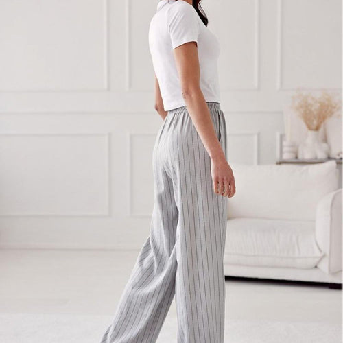 Zip and button fastening fabric trousers are the perfect choice for women who value elegance and comfort. With their classic cut and finish, they are a versatile wardrobe item suitable for various occasions. The elegant cut makes these trousers perfect for both everyday outfits and more formal occasions. The wide legs add sophistication and class, while providing comfort. They are...