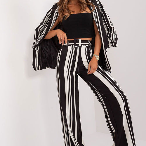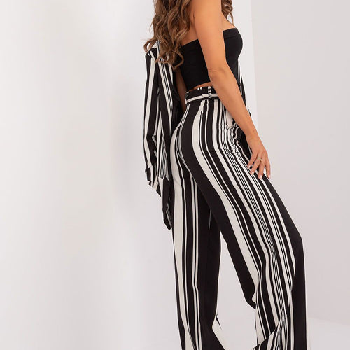 Material trousers with a zip and button closure are the perfect choice for women who value elegance and comfort. Thanks to their classic cut and finish, they are a versatile wardrobe item suitable for various occasions. The elegant cut makes these trousers perfect for both everyday styling and more formal occasions. The wide legs add sophistication and class, while providing...