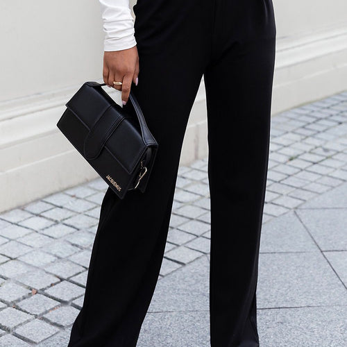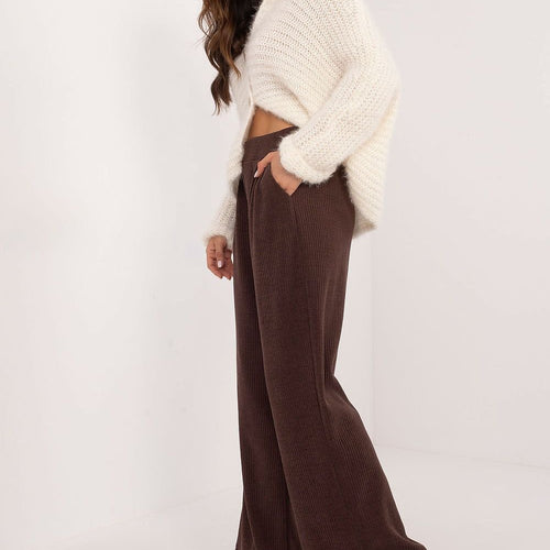 Women's ribbed fabric pants, ideal for everyday wear, combining casual style with comfort. Made from a high-quality blend of polyester and elastane, they offer flexibility and comfort. The smooth pattern makes them versatile and easy to style for a variety of occasions. The high rise accentuates the waist, while the wide legs add lightness and freedom of movement. The lack...