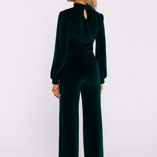 Women's glossy fabric pants, ideal for everyday wear and for work. Made from a soft blend of viscose, nylon and elastane, they offer comfort and flexibility. Casual style makes them perfect for a variety of outfits. The mid-rise with waist tie allows for a customized fit, while the tapered legs give them a modern and elegant look. The smooth pattern...