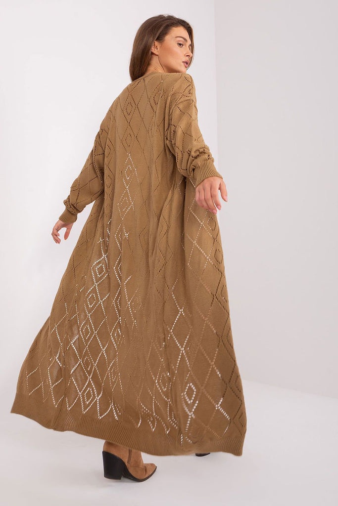 Openwork cardigan with long sleeves, unbuttoned. A perfect addition to many outfits for cooler evenings this time of year. Acrylic 70 % wool 30 % Size Total length Chest one-size-fits-all 124 cm 124 cm