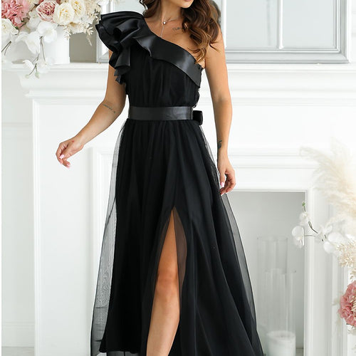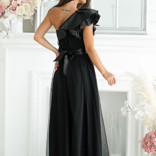Elegant long dress with a slit on the leg, ideal for prom, New Year's Eve and other special occasions. Adjustable ties on the shoulders in the form of bows add subtle charm and ensure a perfect fit. The combination of classics with a touch of sensuality makes it the perfect choice for any special event! Spandex 7 % Polyester 93...