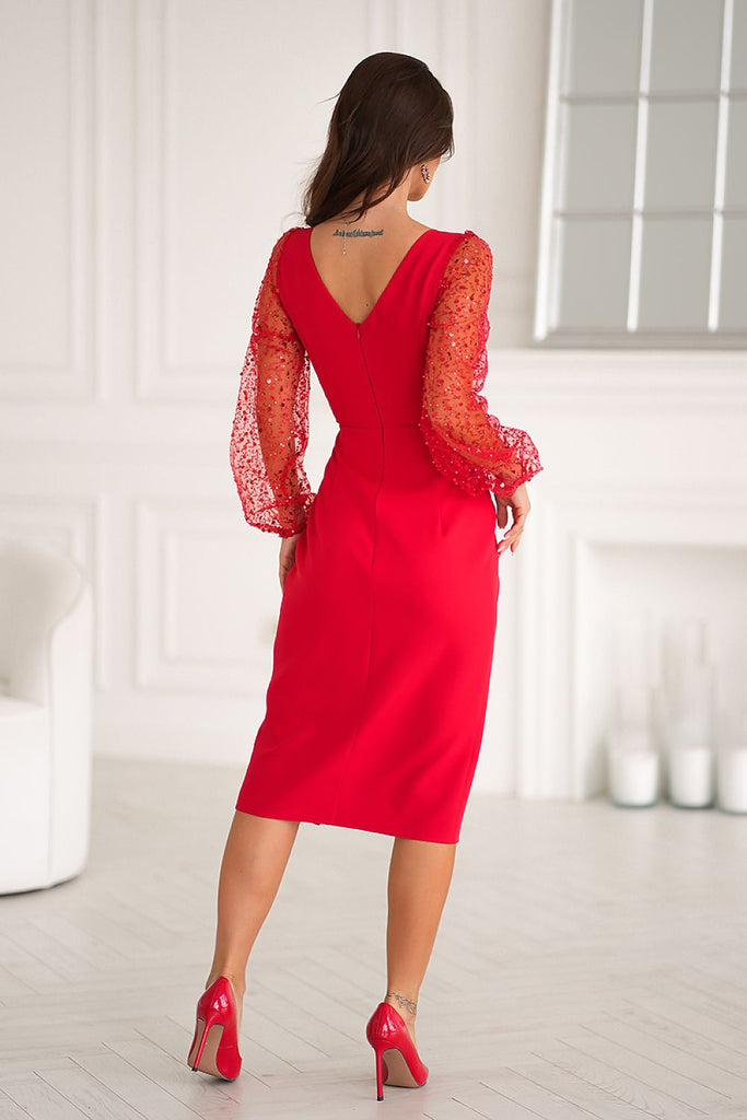 Phenomenal creation with two sequin sleeves. Delicate heart-shaped neckline, slightly exposes the bust. The bottom of the dress is layered. Sequin sleeves add charm and chic, which are a perfect addition to the creation. The dress has a lining, fastened with a covered zipper. Available in lovely colors.. Composition: Lining: 70% Polyester, 30% Viscose. Fabric1: 93% Polyester, 7% Elastane Fabric1....