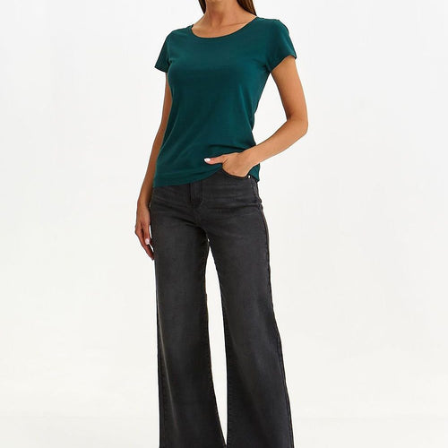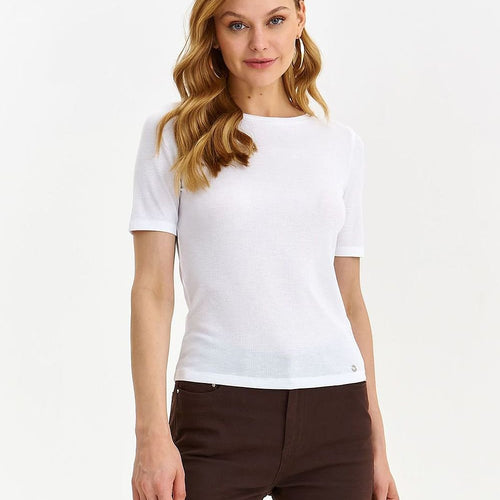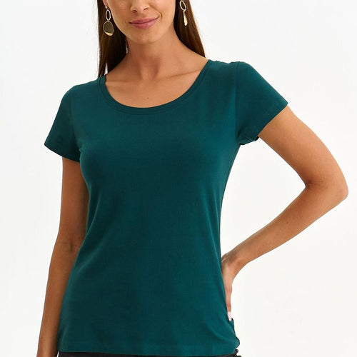 Comfortable to wear and classic in its style and cut, this women's T-shirt has short sleeves and a striking round neckline with piping around it. It comes in a fitted version, which emphasizes the slimness of a woman's figure and her assets. It was made of very pleasant to the touch and appreciated for the offered softness of cotton fabric,...