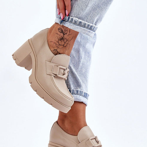 Unusual women's half shoes are set on a flat, massive heel and platform. Made of eco leather with attention to detail. The natural leather insole will take care of your comfort during use. They will perfectly suit many occasions. Slip-on model, with decorations on the front. Be sure to check out our entire collection of half shoes! fabric artificial leather...