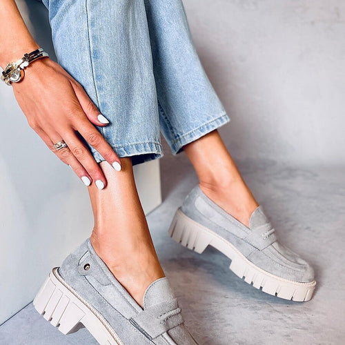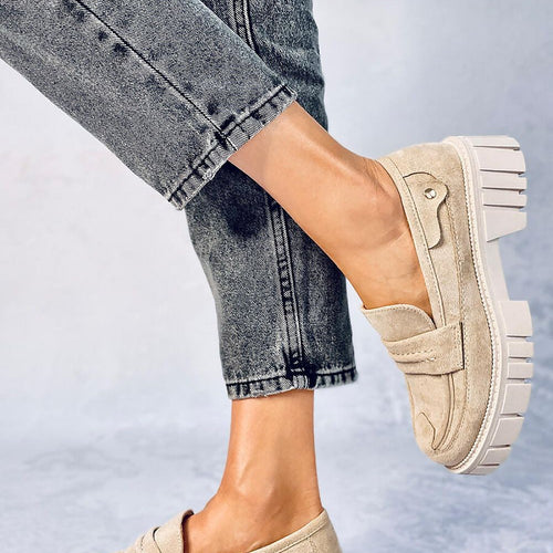 Women's suede moccasins on a platform. The model is distinguished by the most fashionable cut on a massive 2.5 cm high sole. You probably know which shoes will reign in your closet? : ) They are made of eco-suede, which emphasizes their unique style.... fabric ecological suede Heel height 4,5 cm Sole height 2,5 cm Size Insole lenght 36 23...