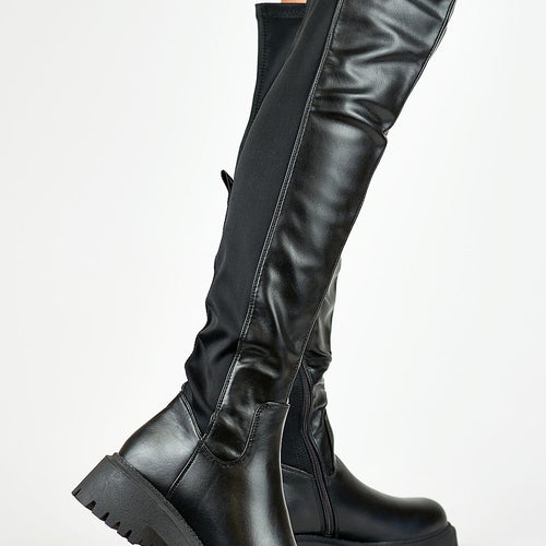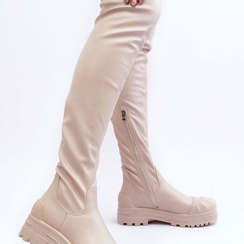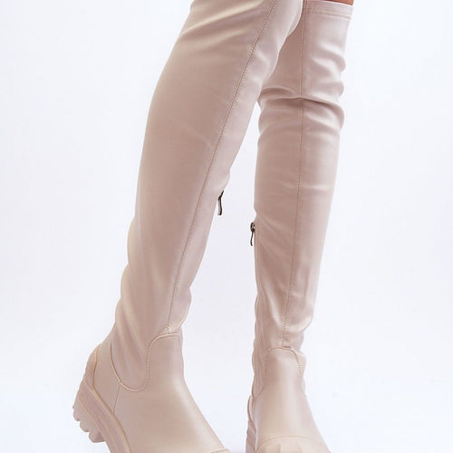High over-the-knee boots made of eco leather. They have a decorative rubber nose and heel counter. The boots are zippered at the bottom of the upper. The solid sole provides stability. Inside at the height of the foot they have warming in the form of a soft shoe blanket. Be sure to check out our other offer of boots as...