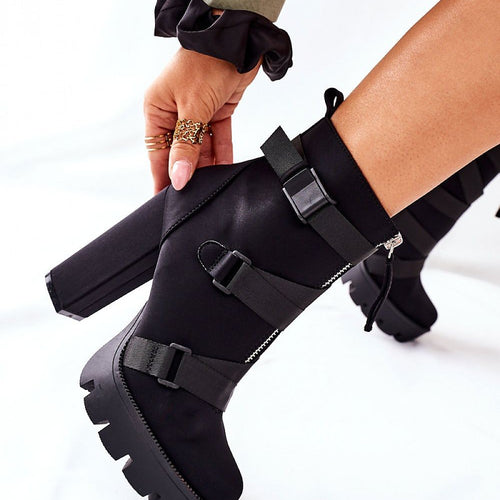 Beautiful and fashionable boots are at your fingertips. The model on a high post and a platform, thanks to which the height of the post will not be so noticeable. Putting on will be facilitated by a zipper sewn on the side. Fashionable decoration in the form of stripes and an additional zipper on the front of the upper. fabric...