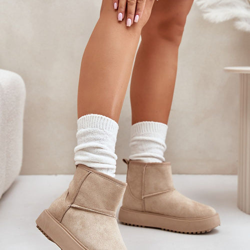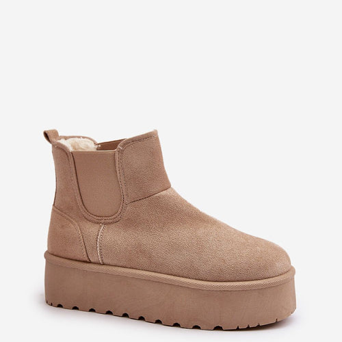 Women's snow boots made of eco-suede. Set on a platform. The model is insulated with fur, which makes them an ideal choice for winter days, protecting against the cold and moisture. The fashionable cut of this footwear allows you to match them with a variety of styles, adding character to any winter outfit! fabric imitation leather suede warmers fur Footbed...