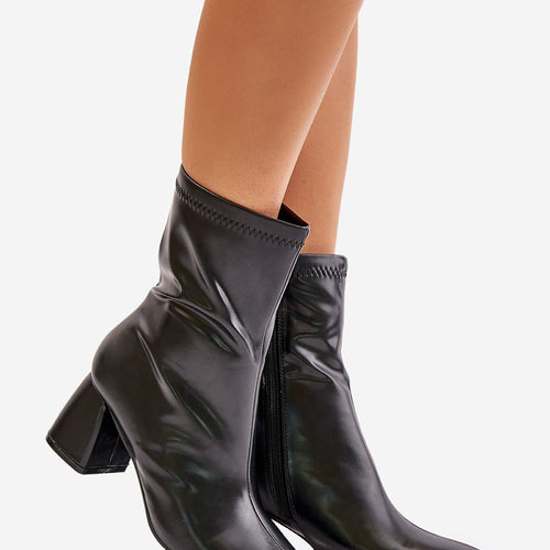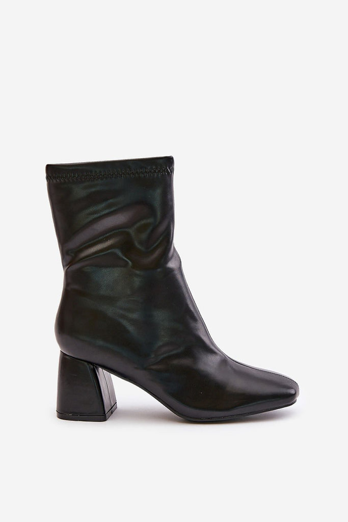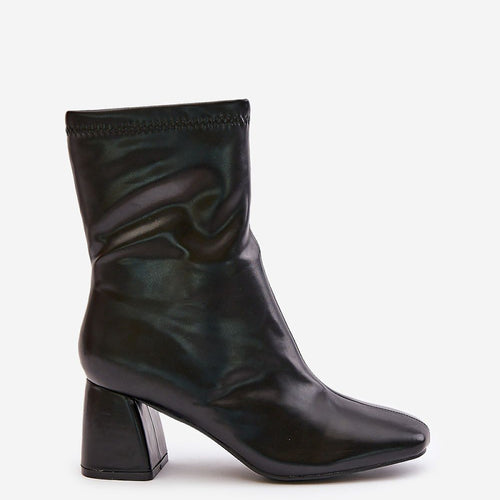 Classic women's boots made of smooth eco leather. Set on a stable stiletto heel, with fashionable square toes. Elegant, minimalist design makes them a perfect complement to both everyday and more formal styling. fabric artificial leather warmers fabric Footbed artificial leather Upper height 18 cm Heel height 6.5 cm Size Insole lenght 36 23.5 cm 37 24 cm 38 24.5...