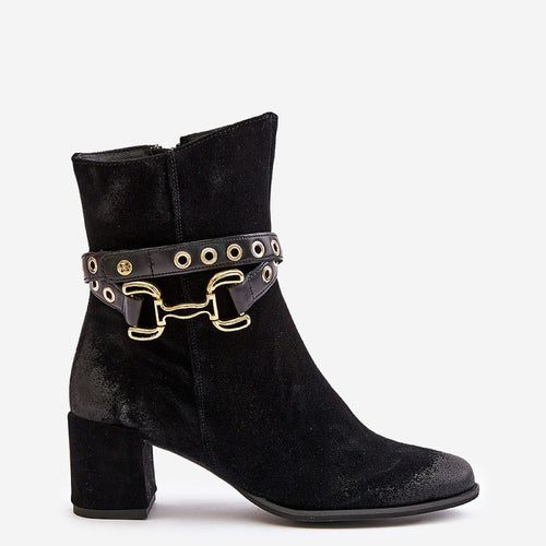 Women's boots from the Maciejka brand, made of high-quality natural suede. They are distinguished by a decorative strap on the side of the upper, which is adorned with gold elements. This model is fastened with a zipper. Set on a stiletto heel. The interior is slightly insulated. Soft insole provides high comfort of use. An elegant cut that you should...