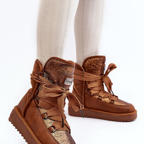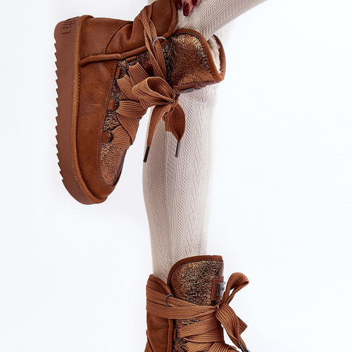 Women's snow boots made of high-quality microfiber fabric. The front of the shoes is decorated with a shiny detail, which gives them a stylish touch. An additional advantage is the fact that they are made of vegan materials. The middle is insulated with synthetic fur. This model has thick laces. Fashionable and functional footwear that is sure to stand out...