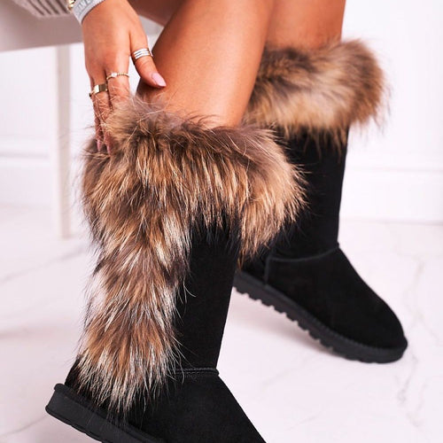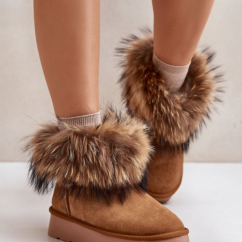 A great choice for the winter season are snow boots! The high upper reaching up to the middle of the calf and the interior covered with thick and warm fur. In addition, the top of the upper and the side are decorated with fluffy fur, which gives them an amazing charm. The snow boots are made of natural suede leather....