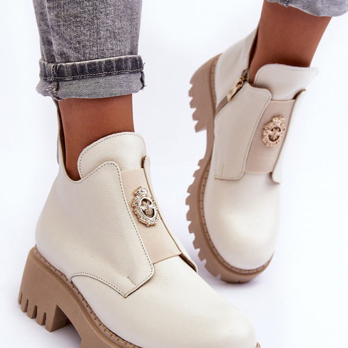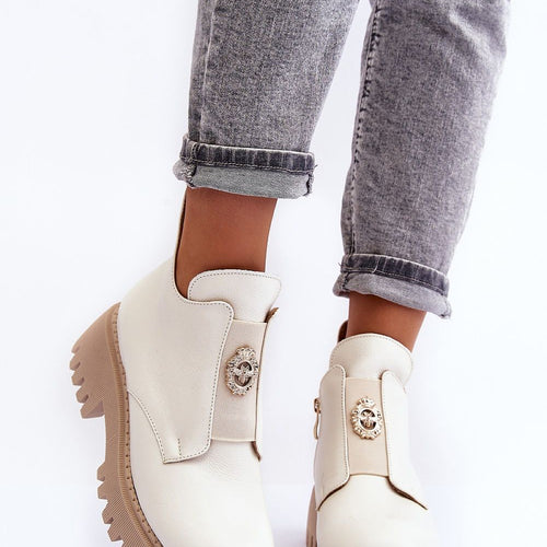 Leather women's ankle boots - biker boots with a buckle. If you are a fan of classics, they will definitely catch your eye : ) The boots have a rubber insert on the side of the upper, which refers to biker boots, and a zipper closure for easy on and off. They are made of synthetic leather, and the interior...