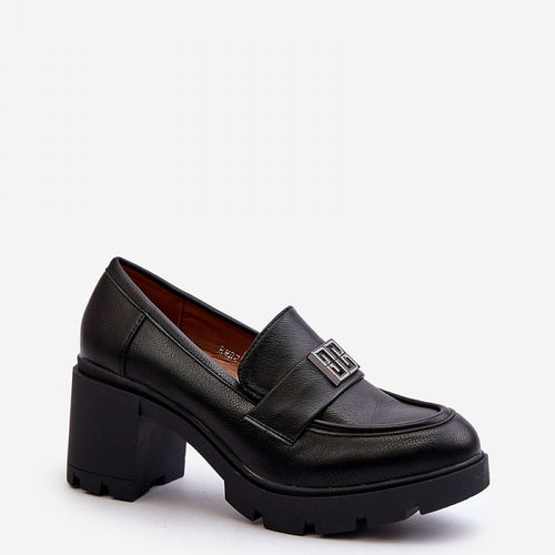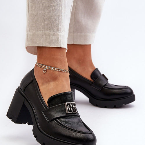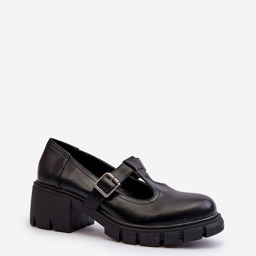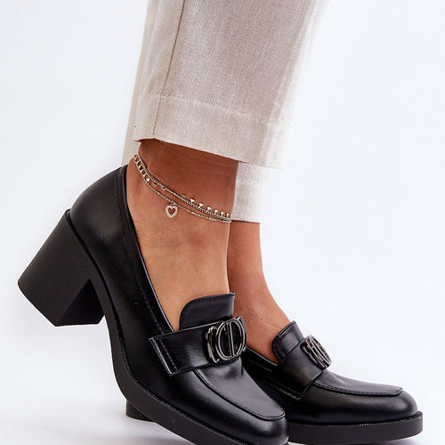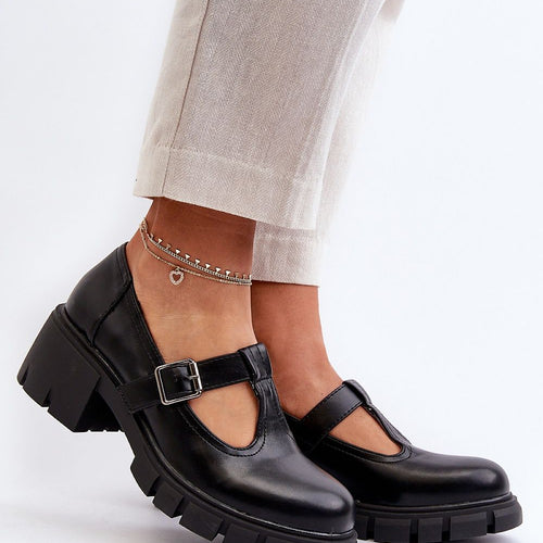 Fashionable half shoes set on a massive post. Made of eco leather. Square-shaped noses add to their unique character, emphasizing their modernity. In addition, the decorative strap on the front gives them an elegant touch, making them perfect for both casual and more formal outfits. They are the perfect choice for those who want to express their individual style! fabric...