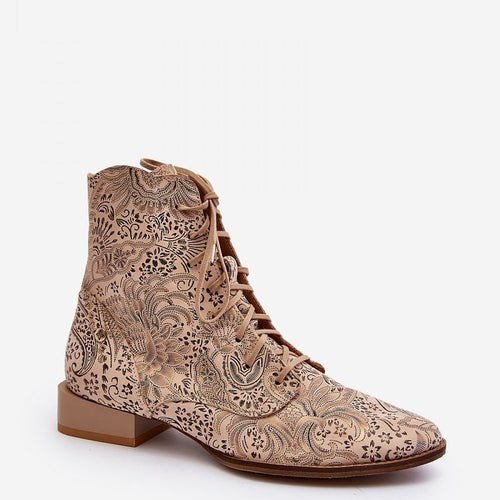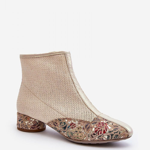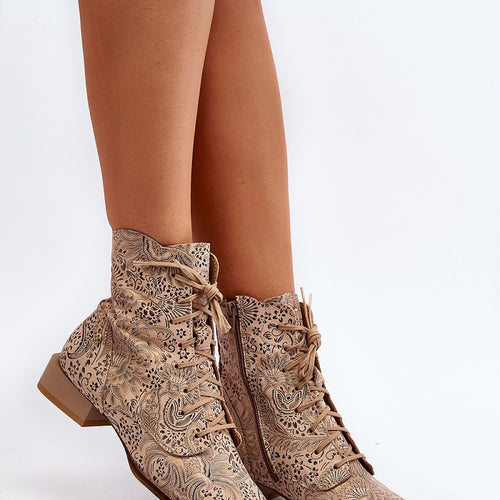 Women's boots by Maciejka are a great choice for any woman who appreciates quality and comfort. Made of natural leather. Fastened with a zipper, which will allow easy and fast putting on the shoes. Flat heel guarantees stability on every step. Patterned upper reaching behind the ankle. This interesting cut will surely complement many different spring stylings! fabric natural leather...