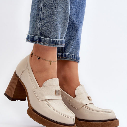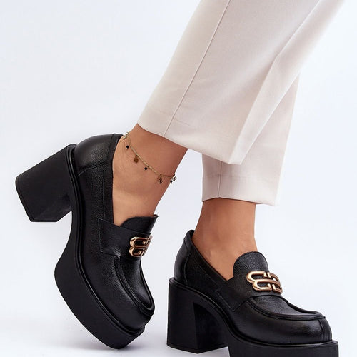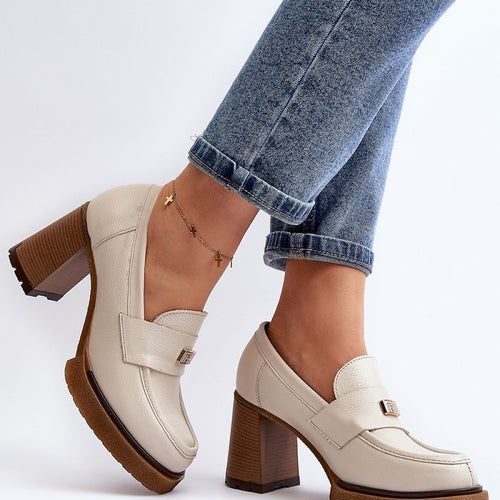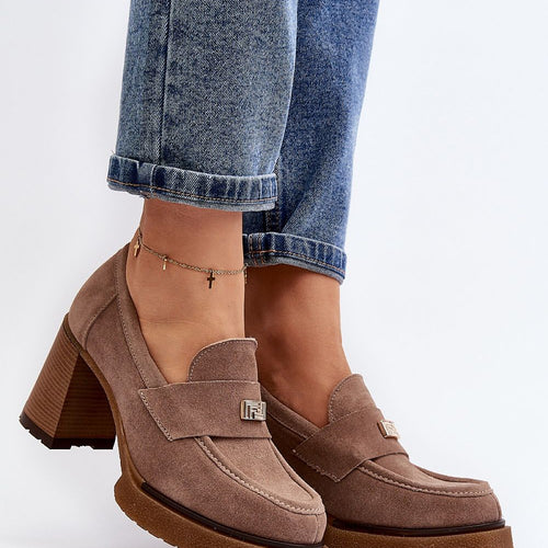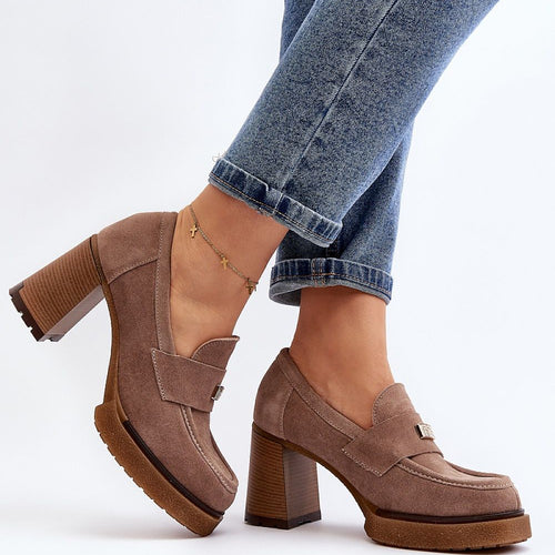 Women's half shoes on a heel in the form of a post with a delicate platform. Made of natural suede leather. This model has rounded toe caps. The sole is made of rubber material. The stiffened heel counter additionally stabilizes the foot. On the front a strap with a small decoration. Perfect for spring styling! You should definitely have them!...