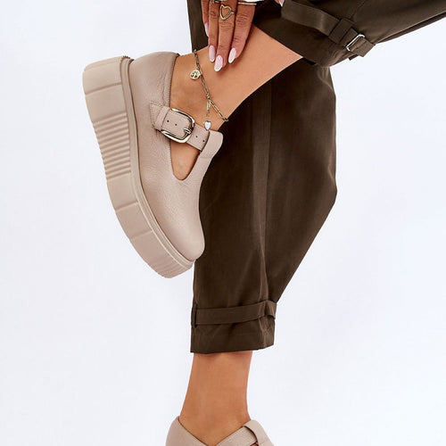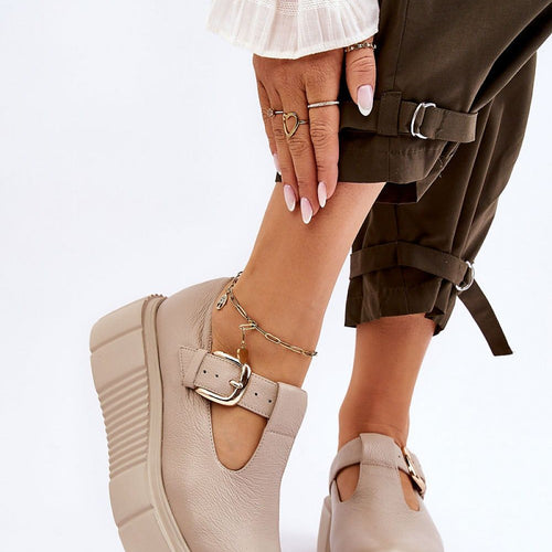 Fashionable women's half-shoes feature a massive platform with grooves on the sides. The upper in front of the ankle was made of natural leather. These half-boots have a stiffened heel counter. Fastened on the side of the upper with a buckle with an adjustable strap. This model will perfectly highlight your styling! You must have it! fabric natural leather Footbed...