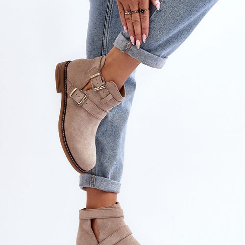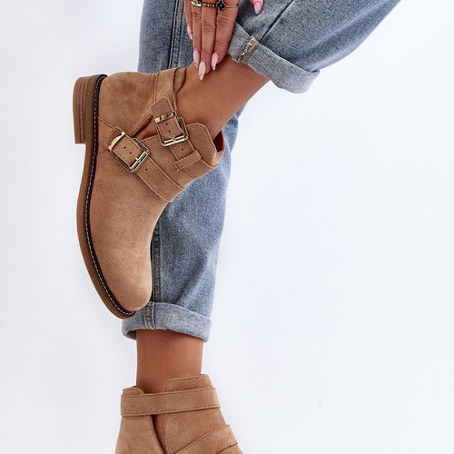 Classic women's boots made of eco-suede. Set on a flat heel. The upper decorated with straps with a buckle. Slip-on model. Rounded toe caps. In addition, this model has a stiffened heel counter. Ideal for many spring stylings with pants, skirts and dresses. fabric imitation leather suede Footbed artificial leather Upper height 9.5 cm Heel height 2.5 cm Size Insole...