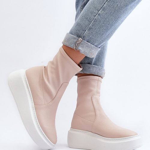 Women's boots with ankle-length upper. Made of natural leather. Set on a massive platform. Slip-on model. Rounded toe caps. These boots will fit a slim foot. Perfect for spring styling! fabric natural leather Footbed artificial leather Upper height 17.5 cm Heel height 6 cm Platform height 4 cm Size Insole lenght 36 23.5 cm 37 24 cm 38 24.5 cm...