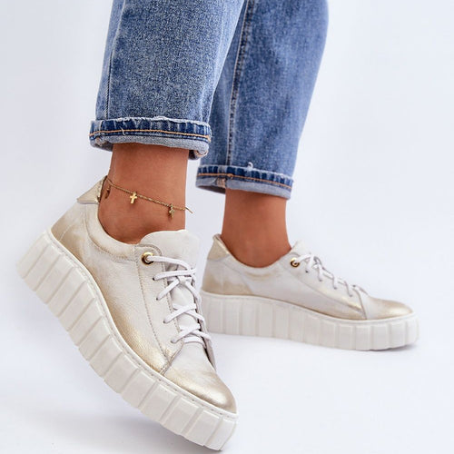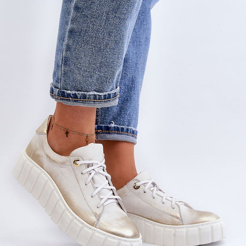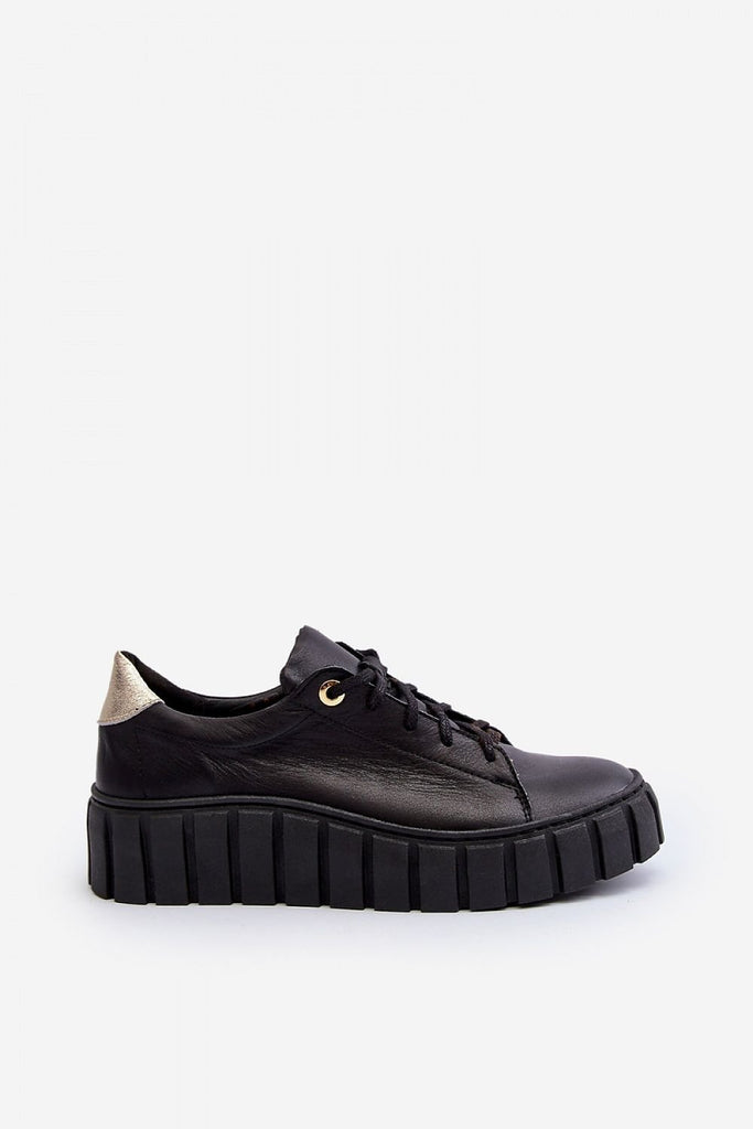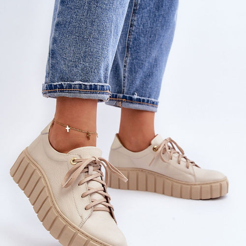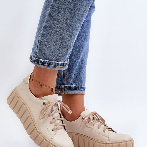 Women's half shoes made of natural leather. Set on a thick rubber sole. Classically laced model. Rounded toe caps. Soft natural leather insole will ensure comfort during use. Ideal for many stylings. You should definitely have them! fabric natural leather Footbed natural leather Upper height 7.5 cm Platform height 3.5 cm Size Insole lenght 36 23.5 cm 37 24 cm...