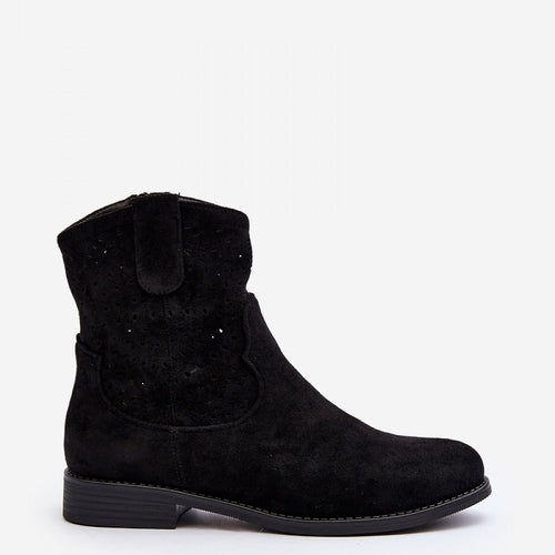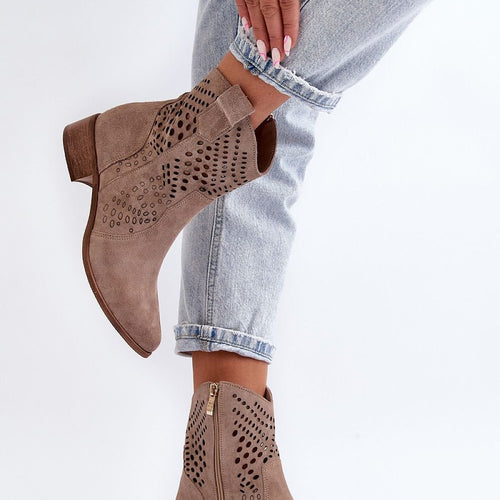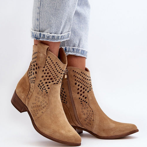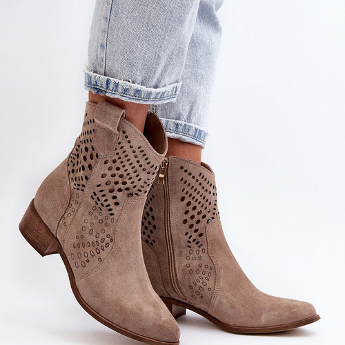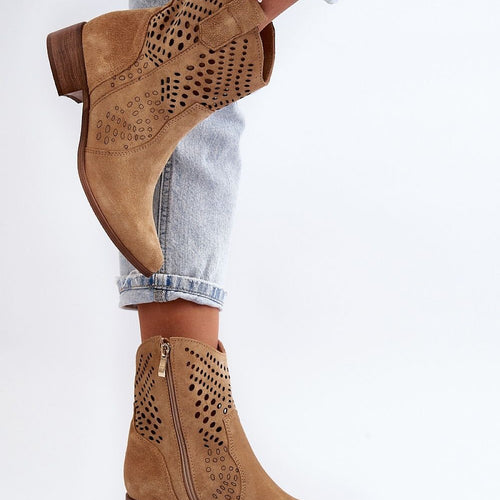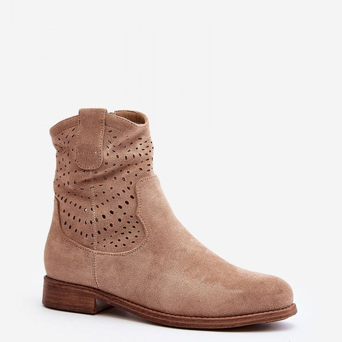 Women's boots are an excellent choice for the autumn-winter season! Made of natural suede. Set on a low heel. Openwork pattern on the upper adds to their elegance. This model is fastened with a zipper. Soft insole guarantees comfort of wearing. fabric ~skóra naturalna zamszowa Footbed natural leather Upper height 15 cm Heel height 4 cm Size Insole lenght 36...
