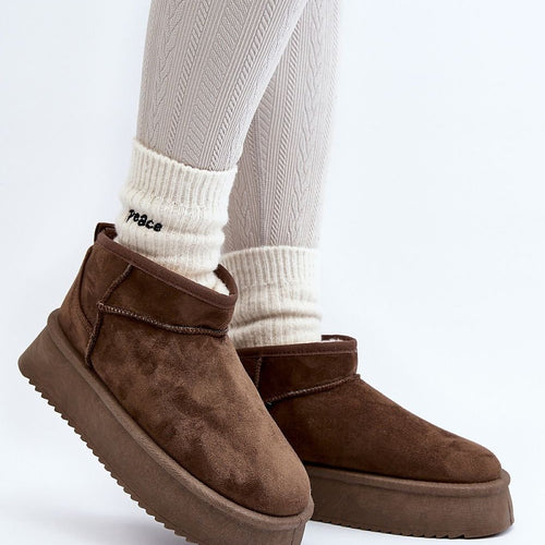 Women's snow boots set on a thick platform, which is great to insulate from the cold ground. Made of eco-suede. Model with a low upper for the ankle. The center is insulated with thick fur. You can match this fashionable cut to almost any styling! fabric imitation leather suede warmers fur Footbed fur Upper height 9 cm Platform height 4.5...