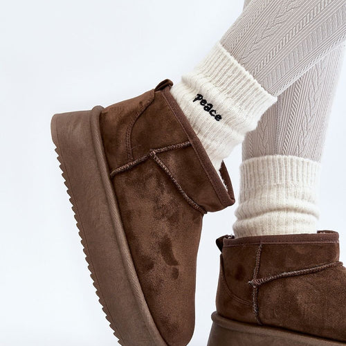 Women's snow boots are perfect for cold days. Made of high quality ecological leather. The interior of the shoes is insulated with thick, ecological fur. You can match this classic model to many stylings. The boots have a massive platform, which will perfectly insulate from the ground. The boots are extremely lightweight. fabric imitation leather suede warmers fur Footbed fur...