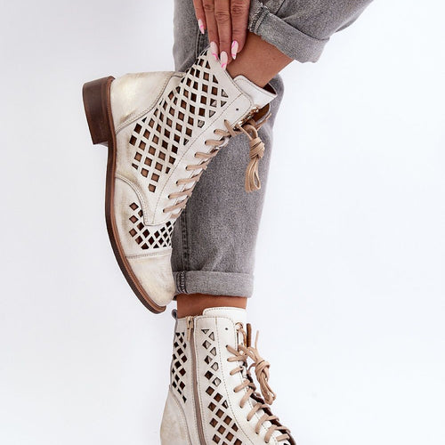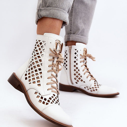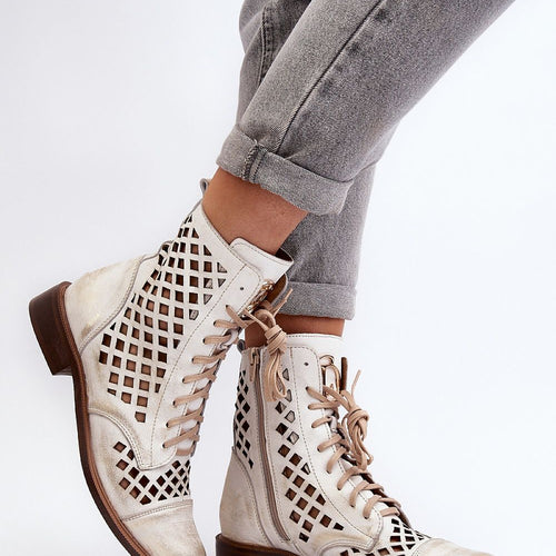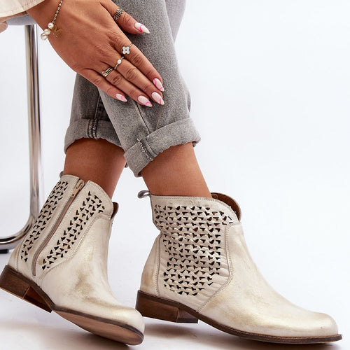 The boots were made of natural leather. Putting on will be facilitated by a zipper sewn on the side. The boots have an openwork pattern. They have a flat heel and a comfortable insole made of natural leather. This extremely comfortable model should be in your closet! fabric natural leather Footbed natural leather Upper height 14 cm Heel height 3...